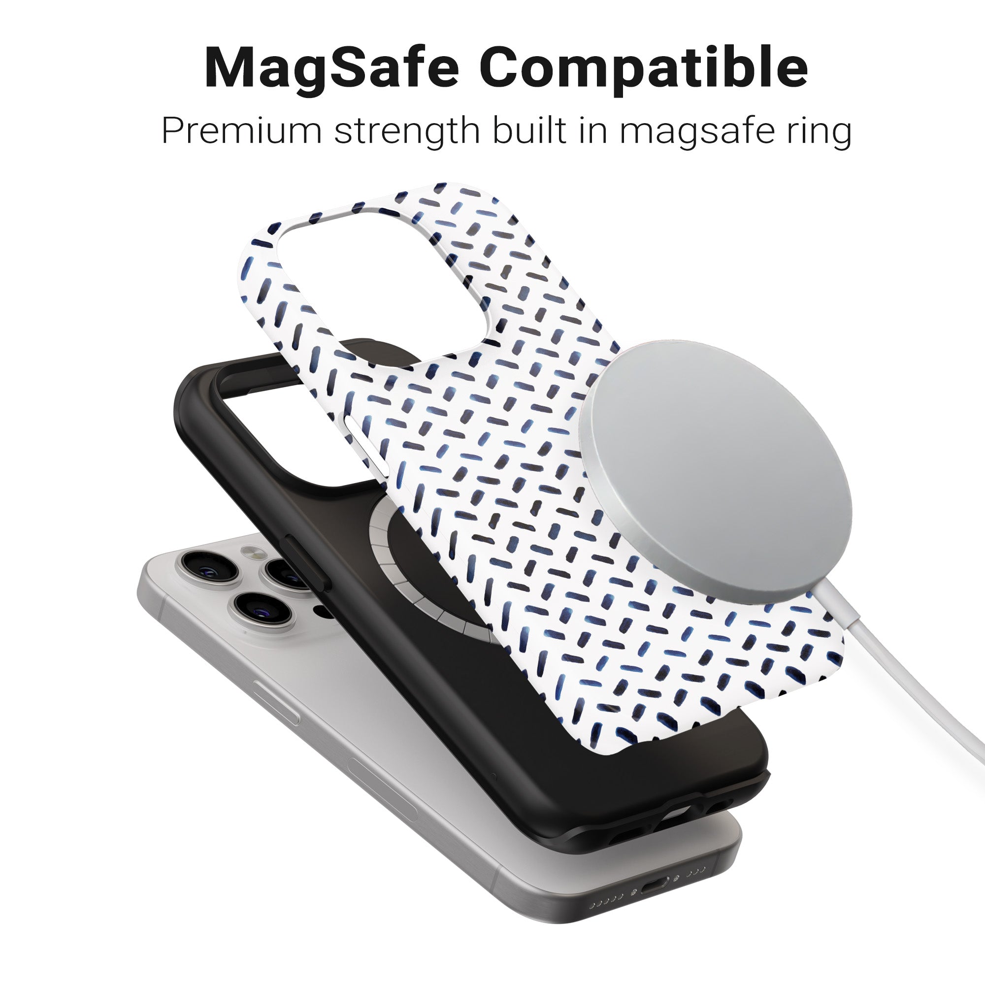 Minimal navy dashed textures.