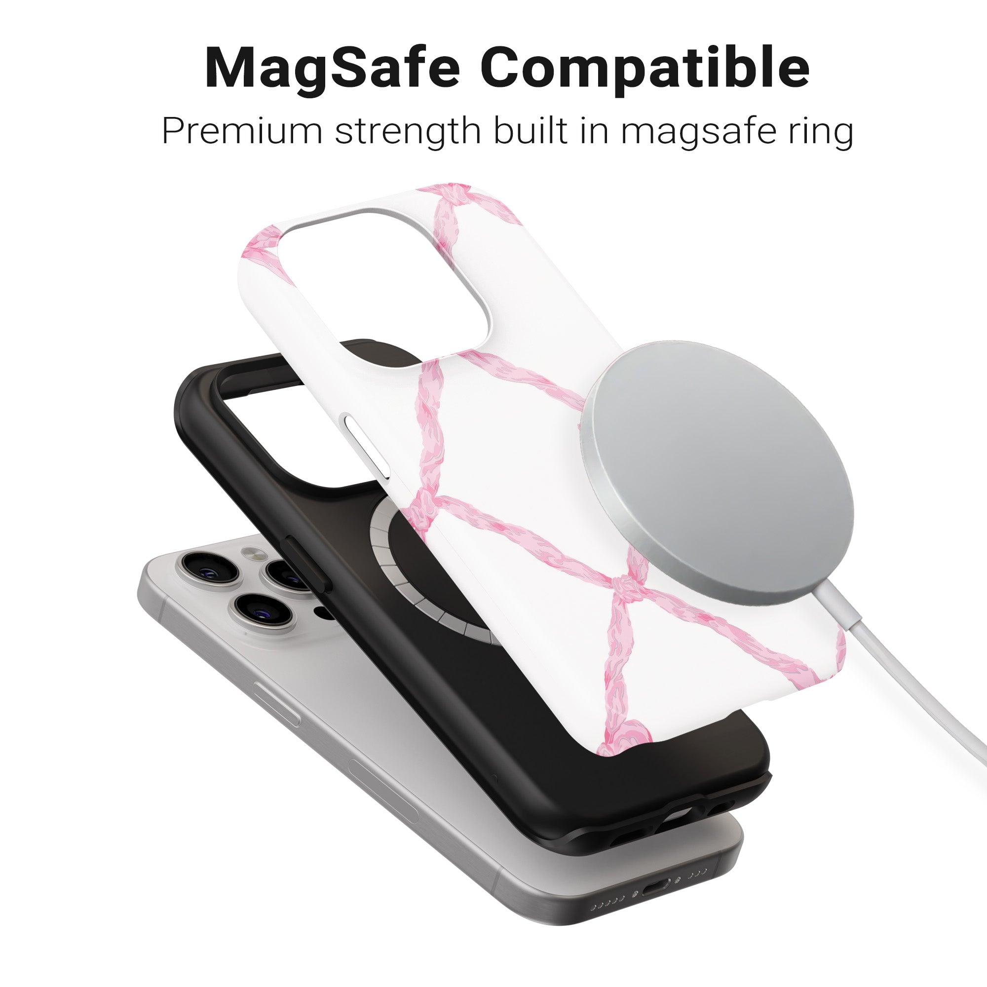 Soft pink lattice pattern with ribbons for a classy, feminine vibe.